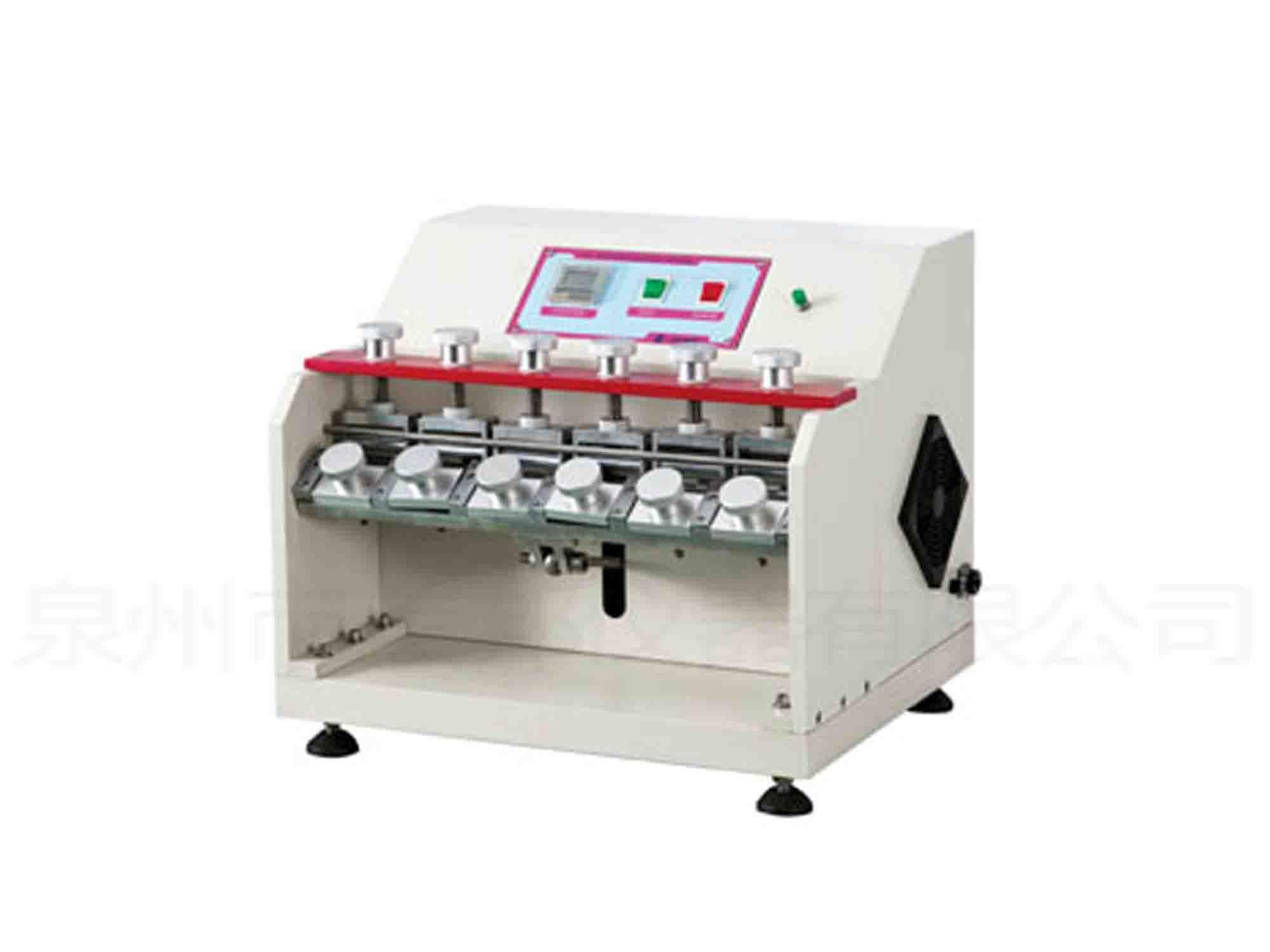 本機為橡膠制品,鞋底,PU等材料之直角耐折試驗,試片經(jīng)本斷伸縮,彎曲后,檢視其減衰,受損及龜裂程度。