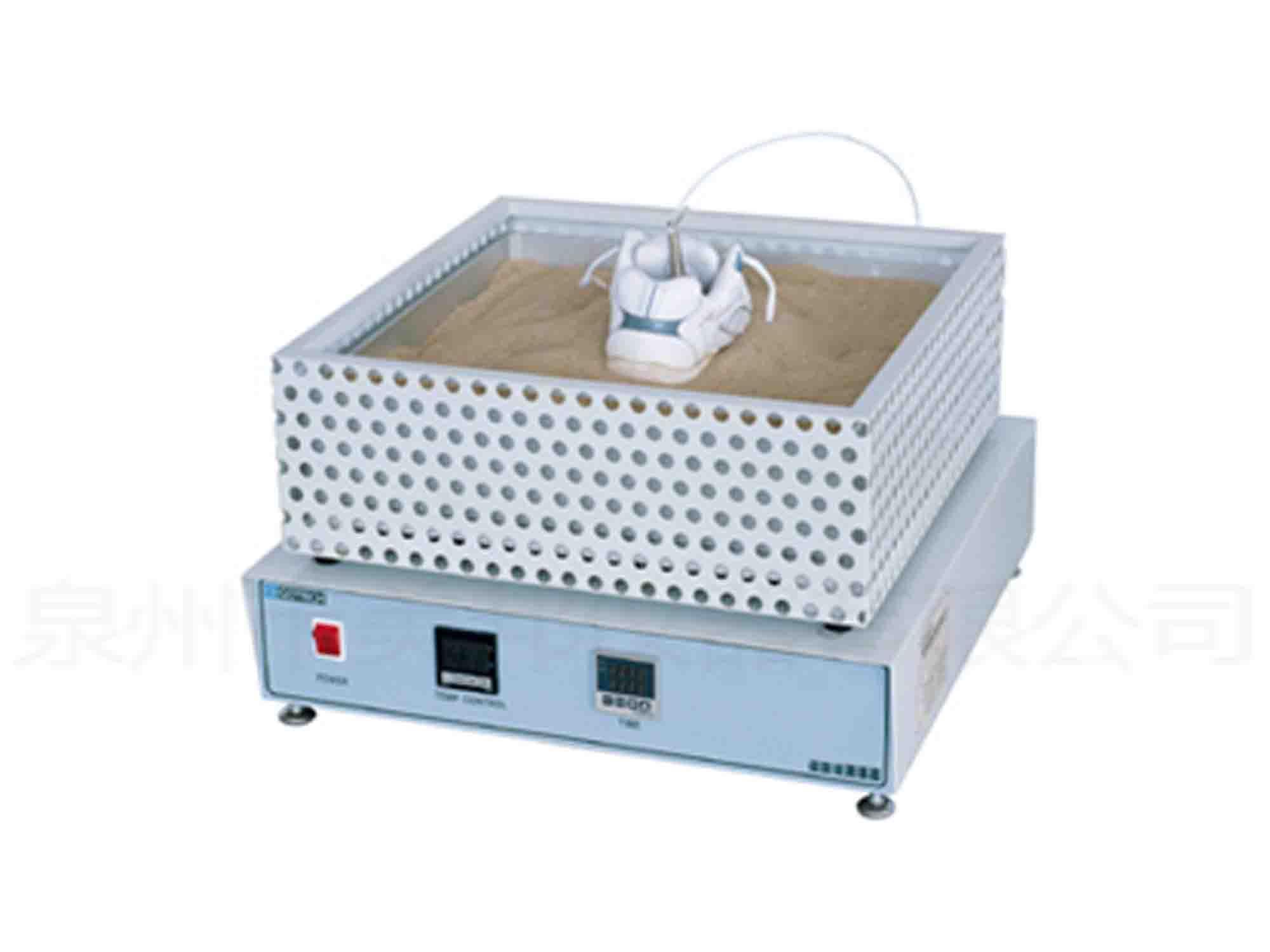 本機(jī)系用來測(cè)試成鞋鞋底的耐熱程度。將試樣鞋放在某一規(guī)定溫度的熱板上一定時(shí)間后,檢查鞋底內(nèi)表面升溫情況。