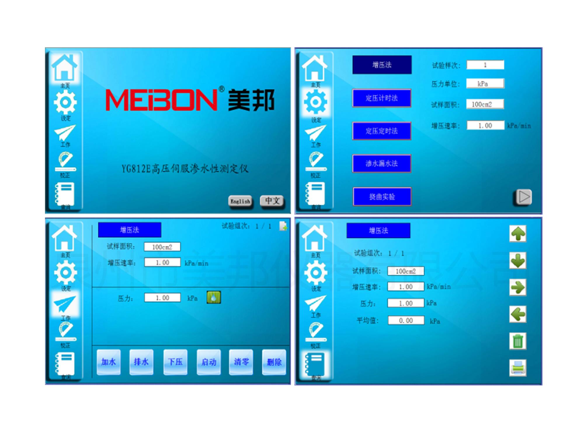 6、五種測(cè)試模式可選,增壓法,定壓計(jì)時(shí)法,定壓定時(shí)法,撓曲松弛及滲水漏水法。