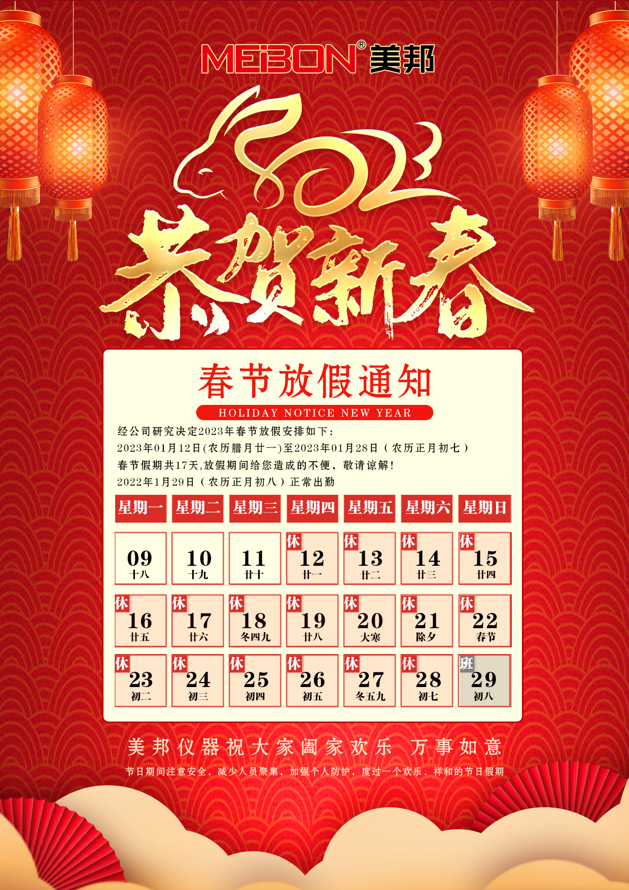 美邦儀器2023年春節(jié)放假通知